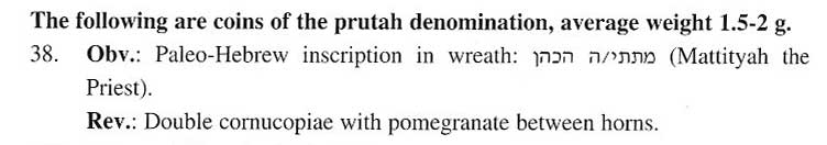 Hyrkanos II. with the name Jonatan That these coins are from Hyrkanos II. is not a general oppinion between numismats and historians. Conf. my Article Die Münzen Jonatan Hyrkanos iI. in: Wie gut sind deine Zelte Jaakov...", Festschrift Reinhold Mayer, Gerlingen 1986, S. 12-28.