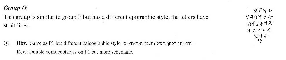 The coins of the Hasmonaeans The coins are arranged here acording to the leading Research book on the Hasmonean coins, A Treasury of Jewish Coins, by Ya'akov Meshorer, Jerusalem/New York 2001 (Hebrew 1997). The different groups of the Hasmonean coins are given according to the Latin letters in the english version of the book of Mehorer. Derpartures from this are mentioned and are according to the German book: Michael Krupp, Die Hasmonäischen Münzen, Jerusalem 2004, new edition 2011. All known coins are given here, even the very seldom. The white fields are taken from Meshorer and Michael Krupp, Metallurgical Examination of Hasmonean coins, in: Israel Numismatic Journal, Volume 16, 2007-8 (Studies in Honor of Shraga Qedar, Jerusalem 2008). The Hasmonean coins are the first given out by a Jewish authority. As a first in a small country and by in this field still inexperiened diecutters the coins ar as in the neighbor countries like the Nabateans primitive and inaccurate. Many times the die is bigger than the flan. Seldom all the incription is complete. Most of the copies here presented belong to the best preserved exampels. The division in groups is by motive, text and the different scripts on the coins. Here all the main types are presented, but not all are for sale. Alltogether it is a very representative collection of the Hasmonean coinage. |