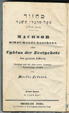erhalten -- 20 Euro Synagogalgebete am Überschreitungsfest (Pessach), mit einer neuen hochdeutschen Übersetzung, zunächst für Frauen von Dr. J. Heinemann, Berlin 1841 - Halbleder-Einband, sehr gut erhalten -- 20 Euro Gebetbuch für die neue Synagoge in Berlin, Teil II Neujahrsfest